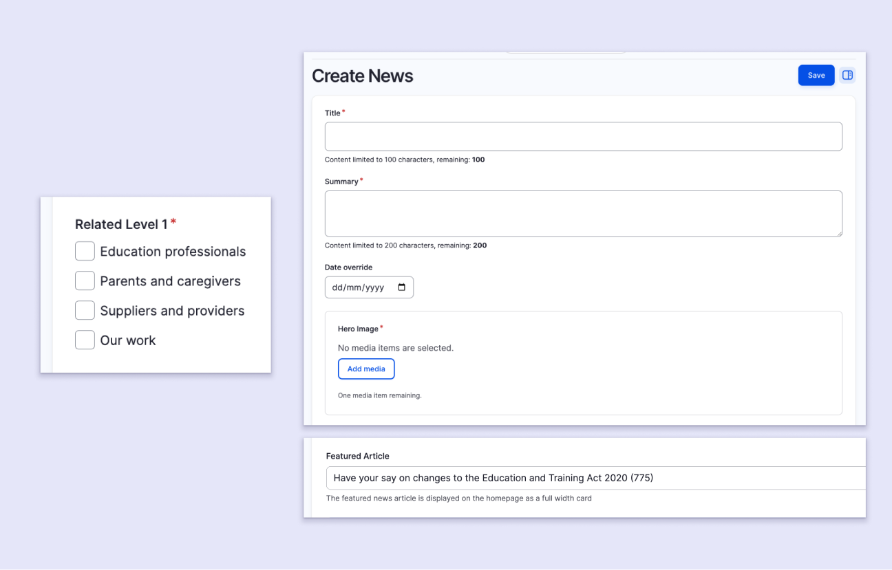 Diverse user base - We had to design for a wide range of users, including teachers, admin staff, parents, students, suppliers, and more. We also needed to consider internal ministry staff who would access the site and manage its content.